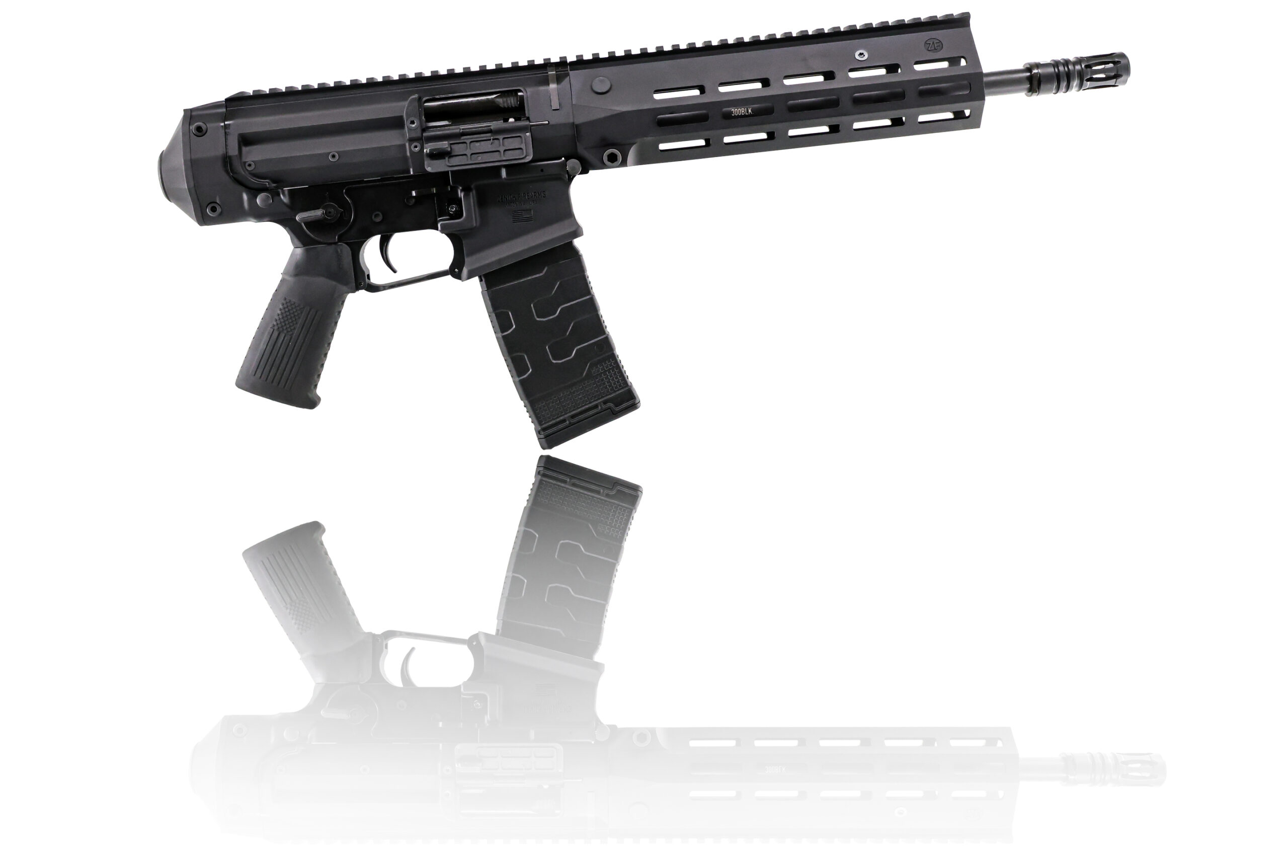The ZF-56 12″ is a semi-auto pistol with a roller-delayed blowback operating system. This pistol is chambered in 5.56 and comes with a full length Picatinny rail, & a cold hammer-forged barrel. The American Made ZF-56 also features a last round bolt hold open system. This firearm also features a buffer tube compatible end cap.
