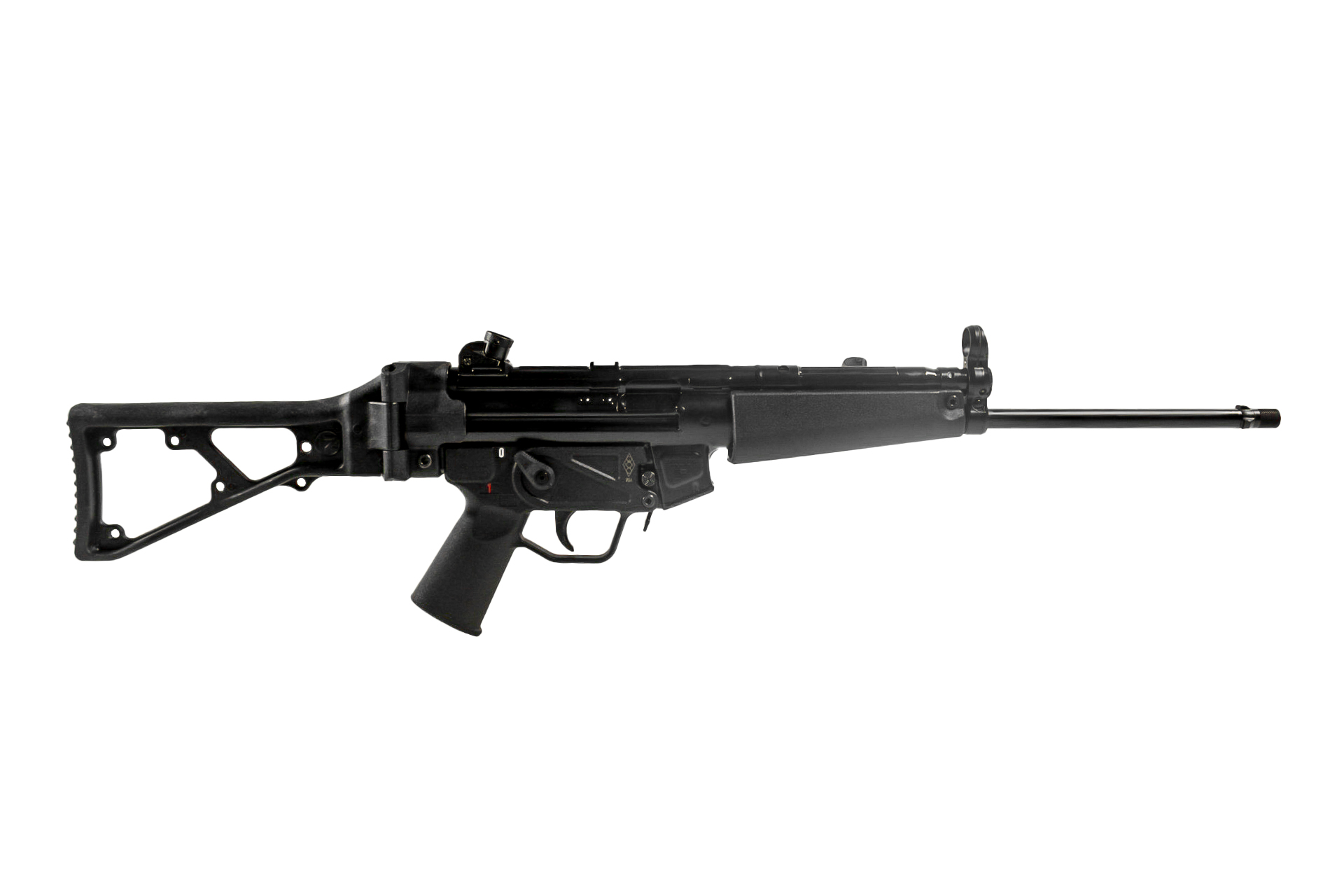 The ZF5-L is a semi-auto MP5 style firearm featuring a roller-delayed blowback operating system, Pic rail, & a cold hammer-forged barrel. The American Made ZF5-L is a rifle that pairs the versatile 9mm cartridge with a performance maximizing barrel length, sight radius, and tropical wide forearm. . It is covered by a limited lifetime warranty, and ships in a high-quality carry case with a Picatinny optics rail, 3-lug flash hider, three magazines, premium 2-point sling, a cleaning kit, a folding stock and a user manual.
